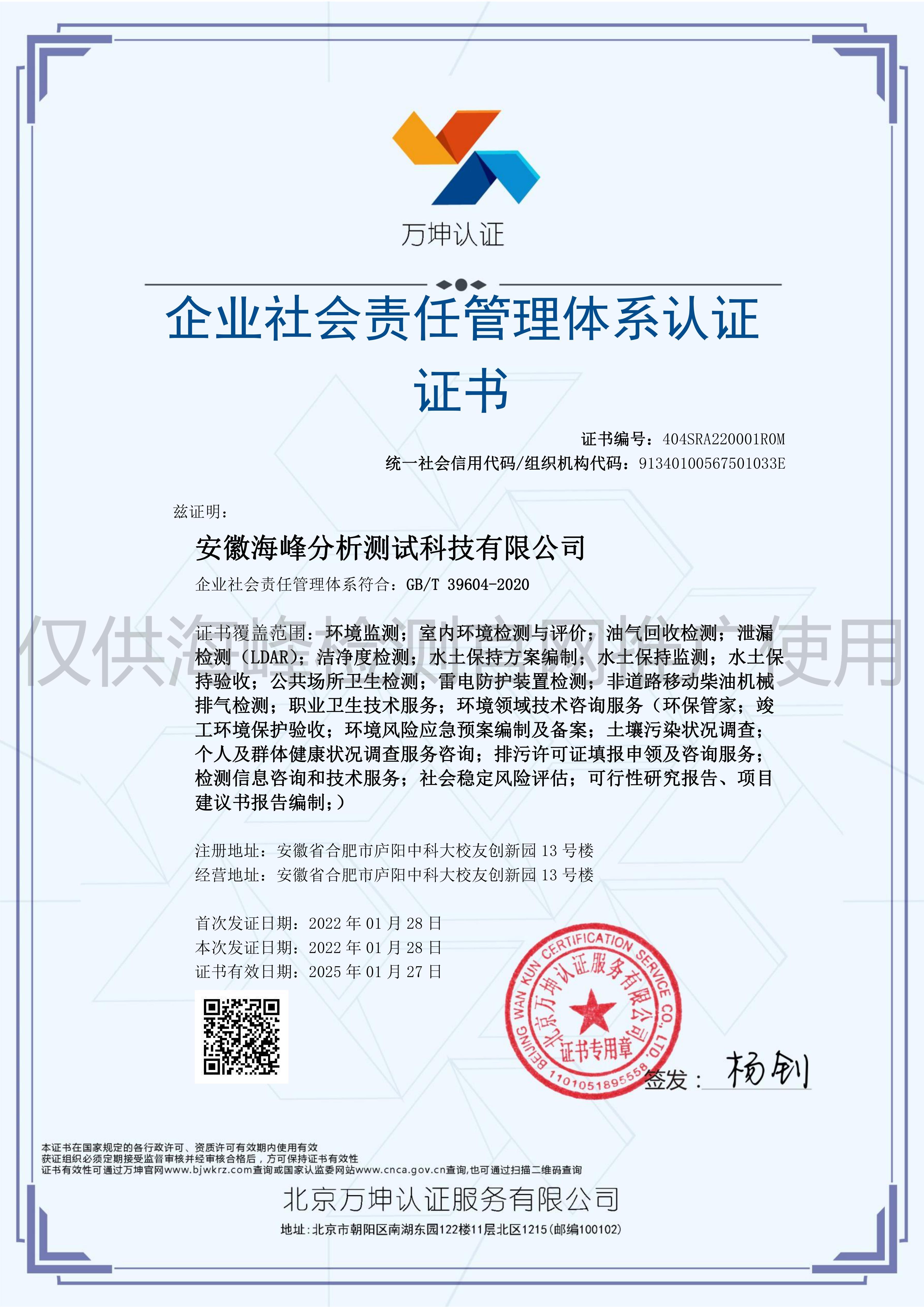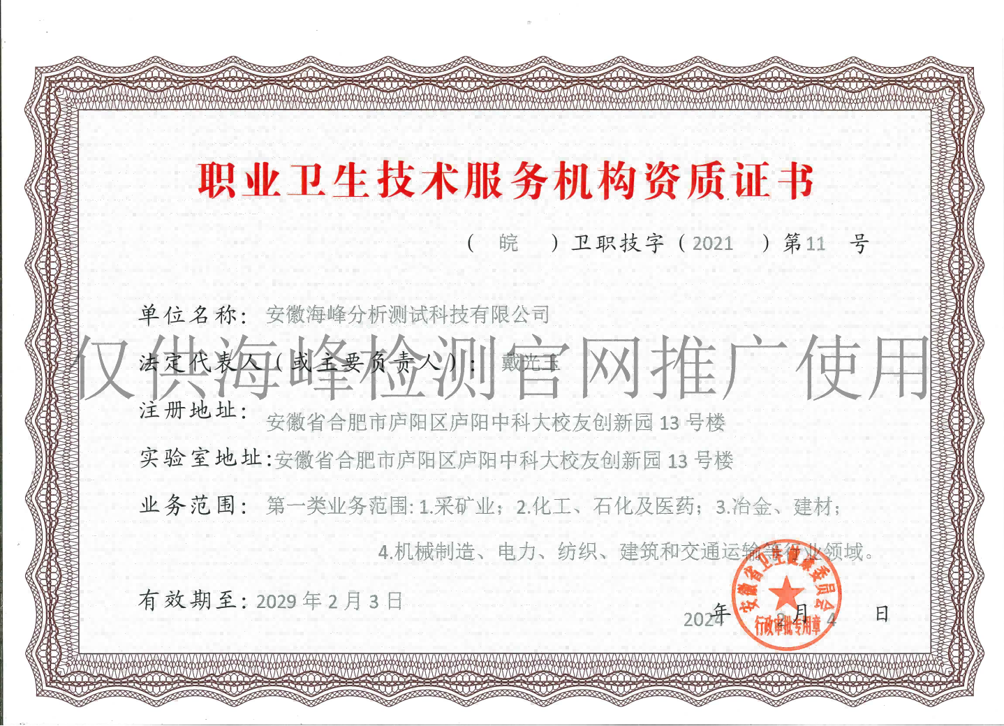 安徽海峰分析測試科技有限公司(以下簡稱海峰檢測)成立于2010 年,隸屬于安徽方中科技集團有限公司,公司下設安徽遠通檢測科技有限公司(安慶)、安徽安海新環境科技有限公司(亳州)。